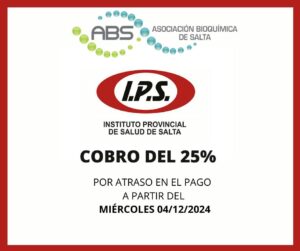 Comunicamos a Uds. que a partir del día MIÉRCOLES 4/12/2024 la atención a los afiliados de IPS, tanto Ambulatorios como Internados, será la orden autorizada más el 25 % del total de prácticas solicitadas en los pedidos médicos en concepto de Arancel Diferenciado por Atraso en el pago, debido a que hasta la fecha no hemos obtenido la cancelación de saldo del 25% del mes de septiembre, que debió hacerse efectivo hasta el 2 de diciembre, y sin fecha de pago.