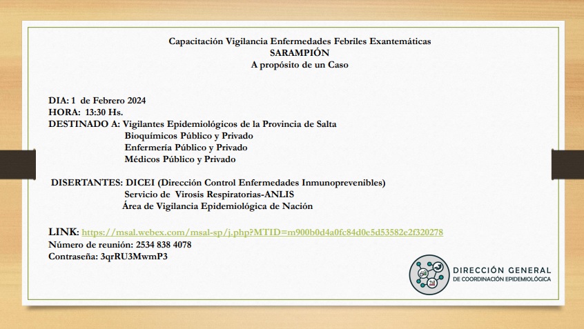 Les compartimos información acerca de la Capacitación Vigilancia Enfermedades Febriles Exantemáticas- SARAMPIÓN – A propósito de un Caso.