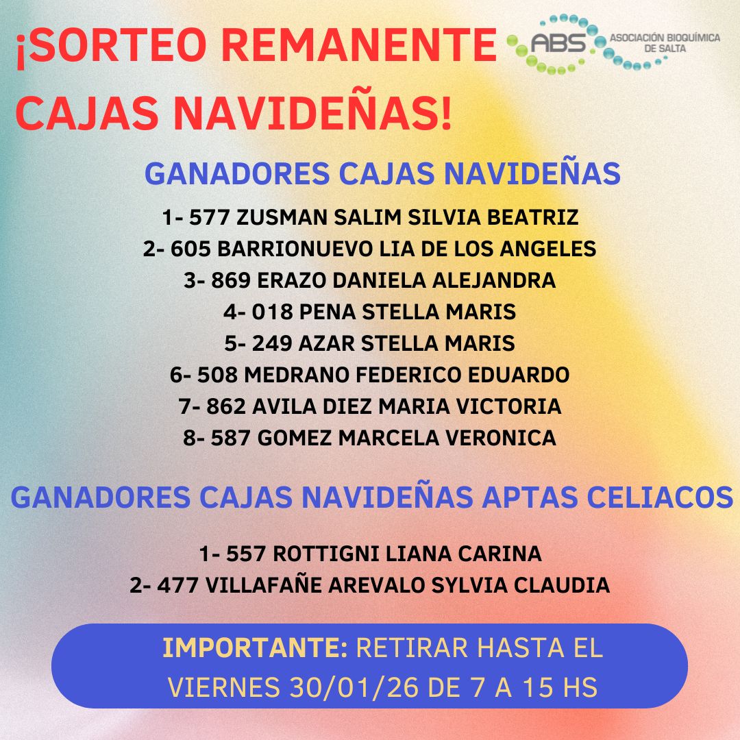 ATENCIÓN❗ Sorteo Express de remanente de Cajas Navideñas! Felicidades a los Ganadores! 🎉 Retiro por Mesa de Entrada de 7 a 15 hs hasta el Viernes 30/01