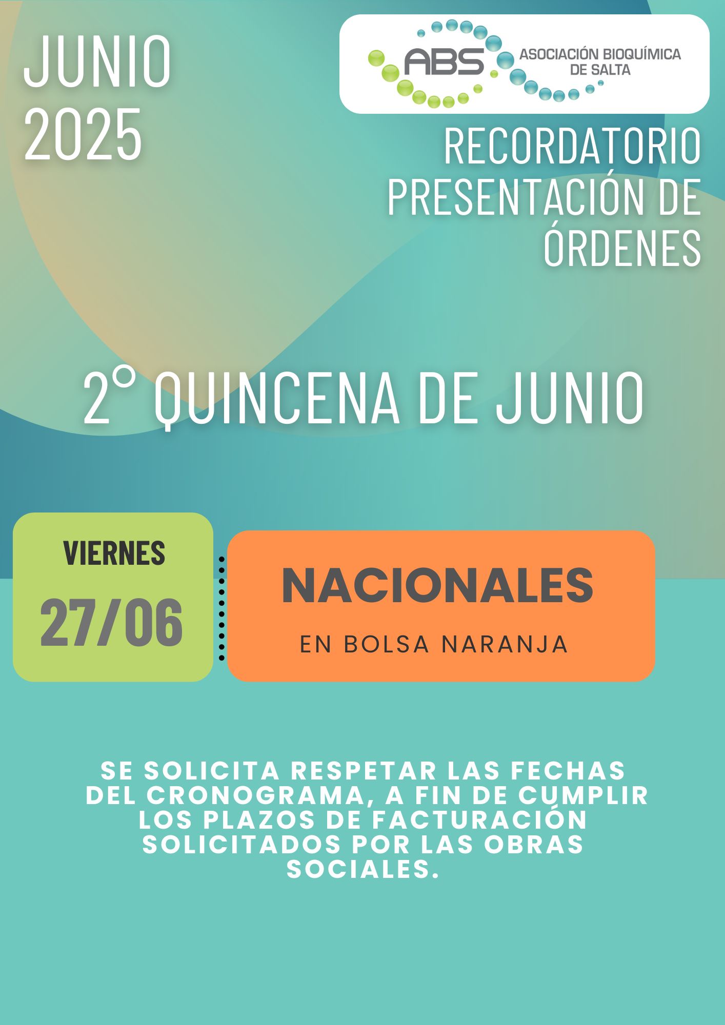 RECORDATORIO CRONOGRAMA PRESENTACIÓN DE ÓRDENES